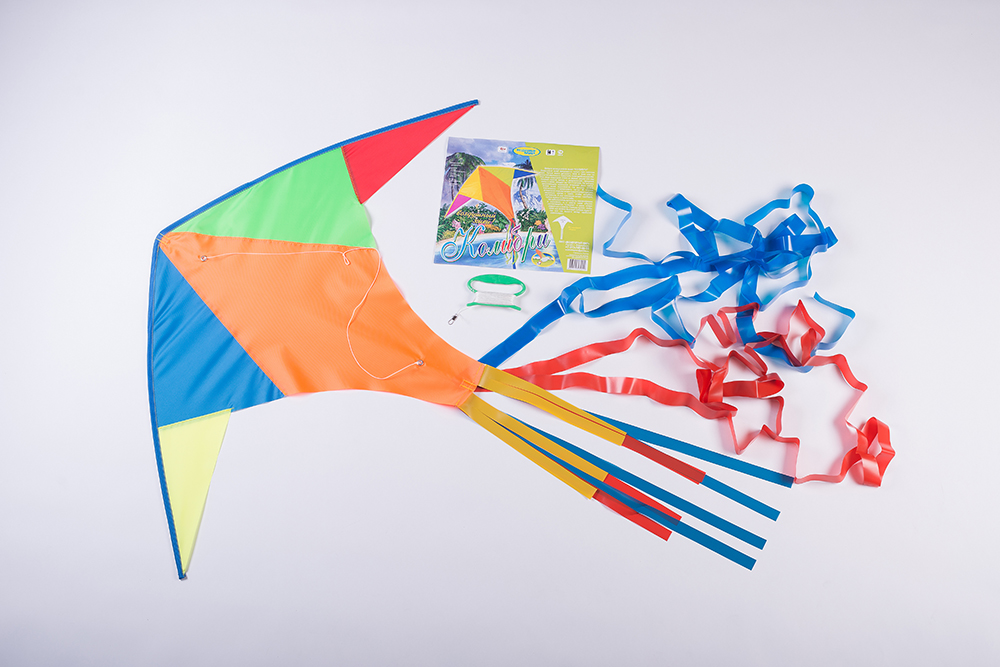 Простой в управлении воздушный змей с разноцветным хвостом позволяет своим ярким цветом привлечь внимание. За счет небольшого размера дети легко могут с ним справиться. Размер-110*70 см. Длина леера-30м.