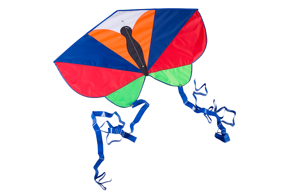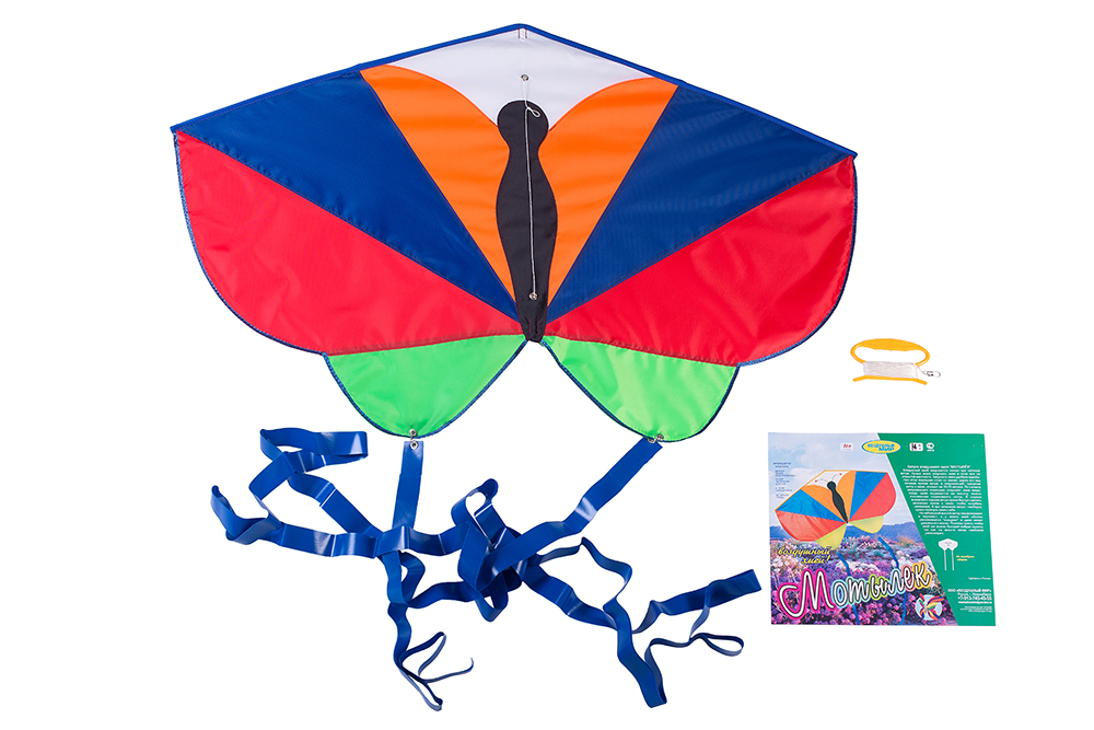 Мотылек стремится к солнышку! За счет своей формы при рывках за леер во время полета, возможно, оживить мотылька и он будет махать своими крылышками. Размер - 102х70см, длина леера - 30м.