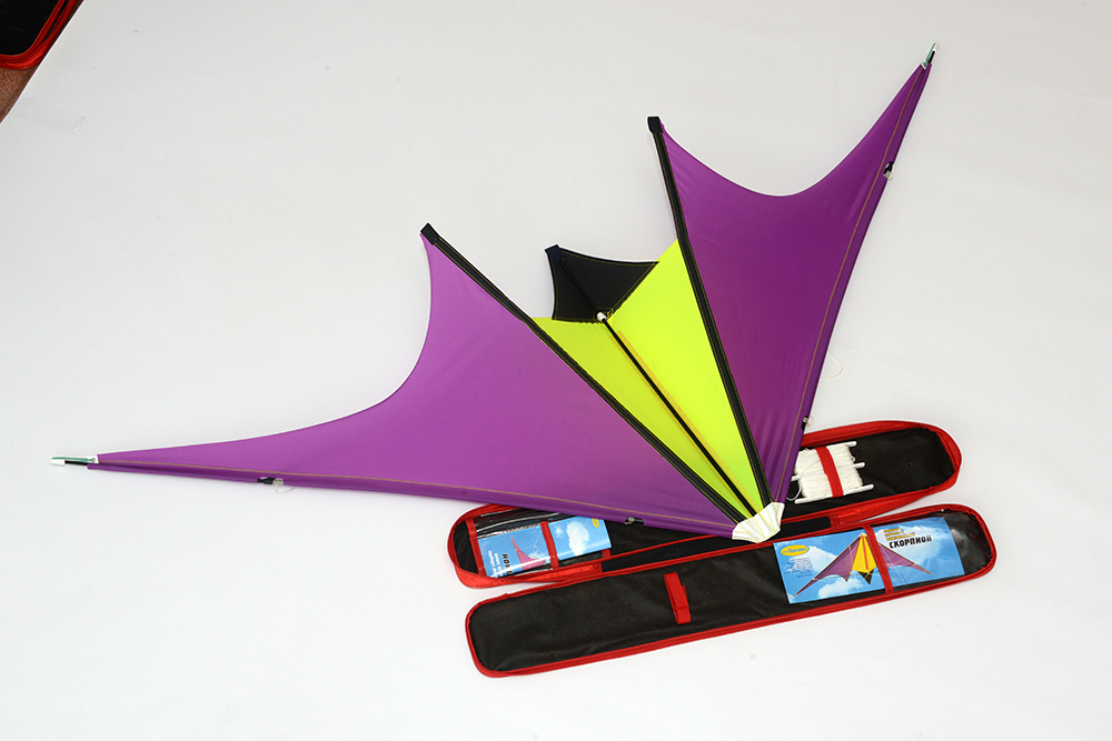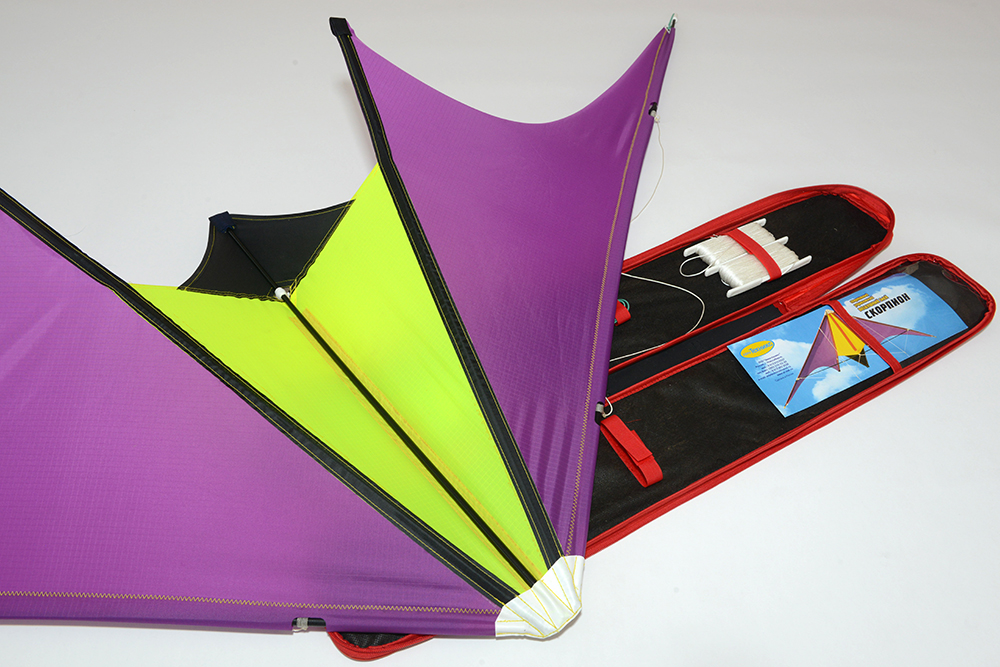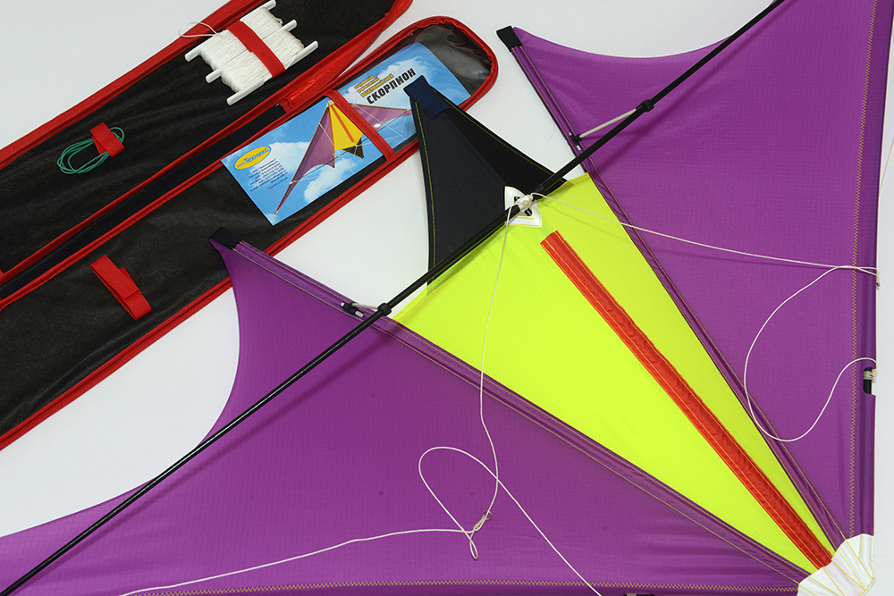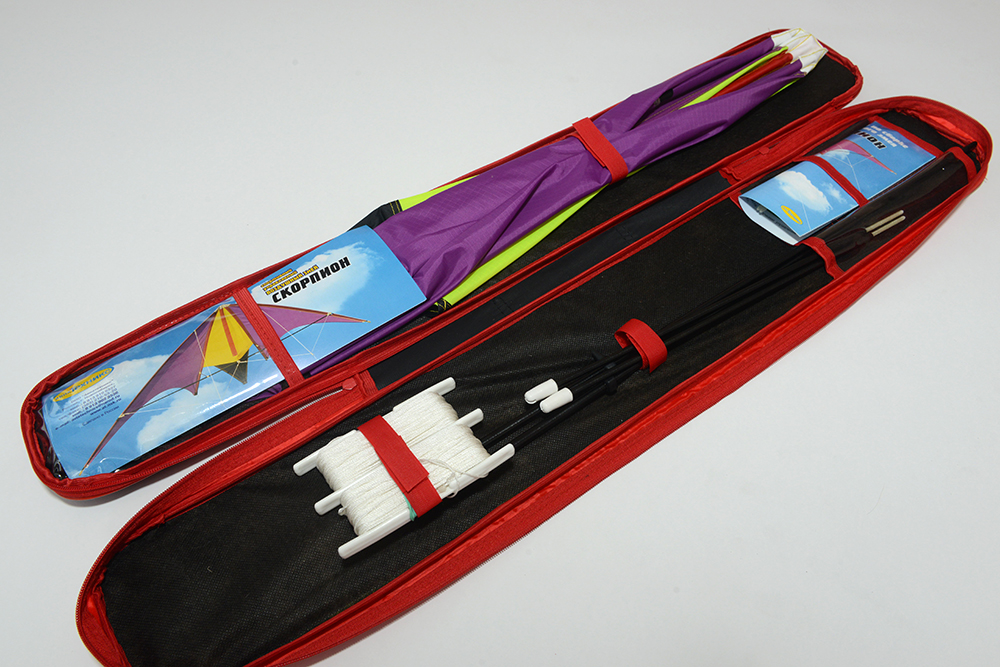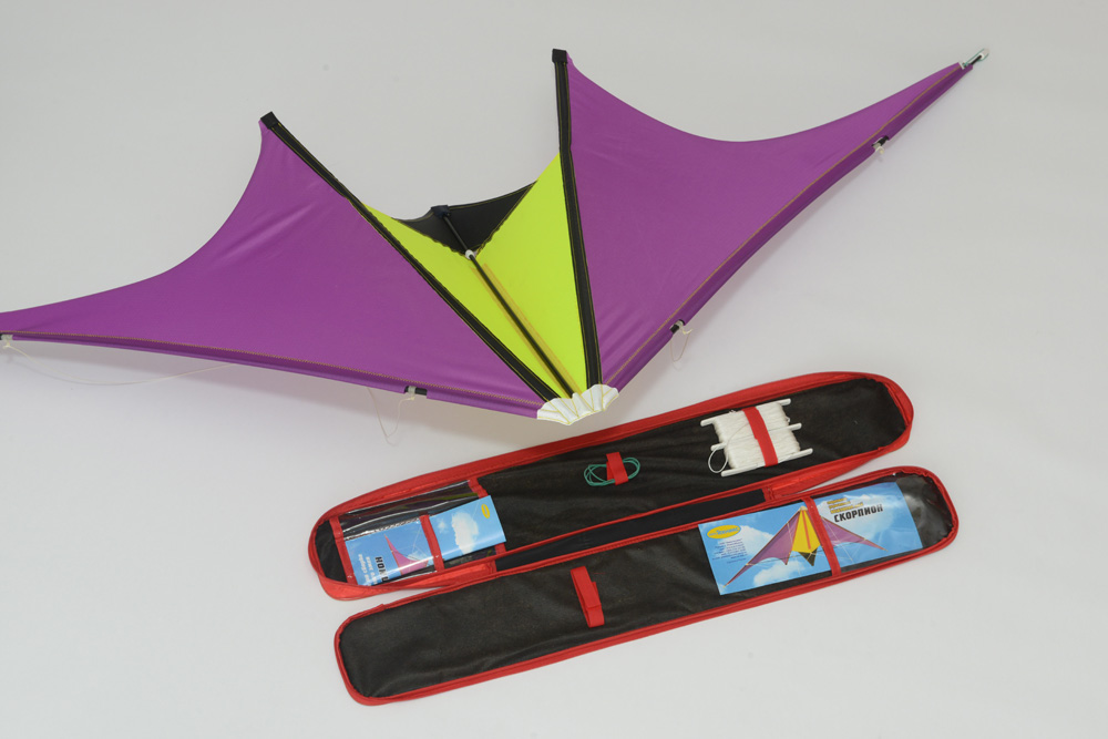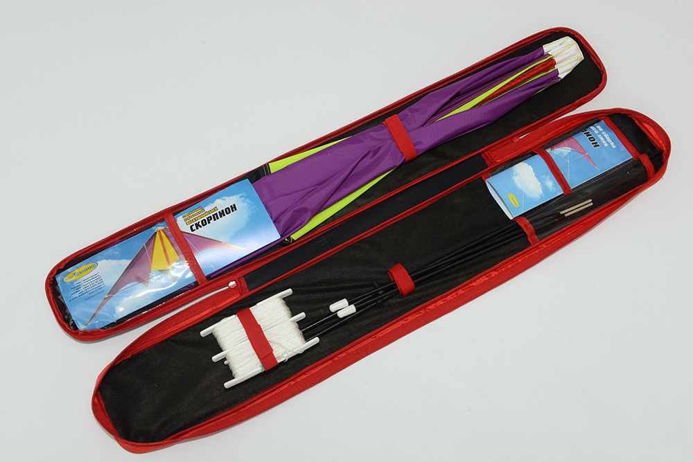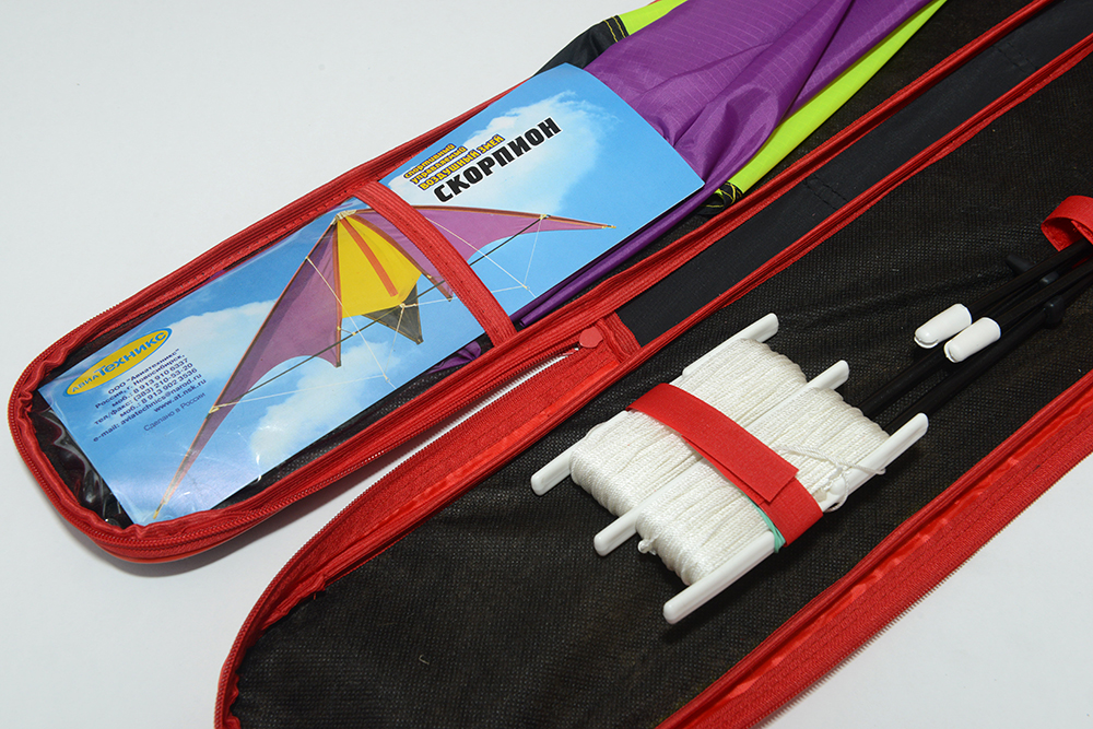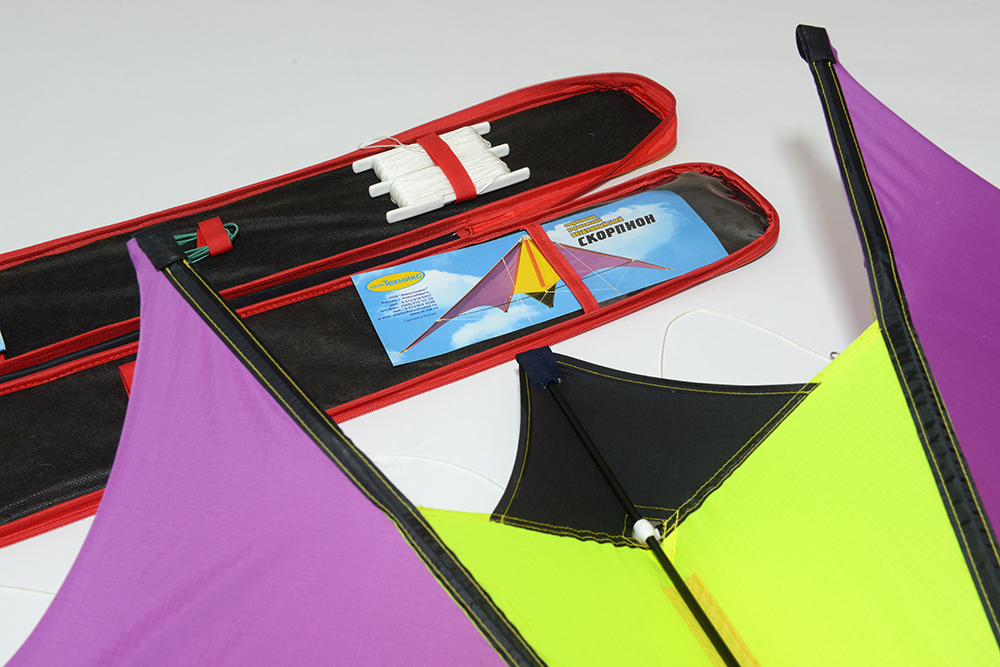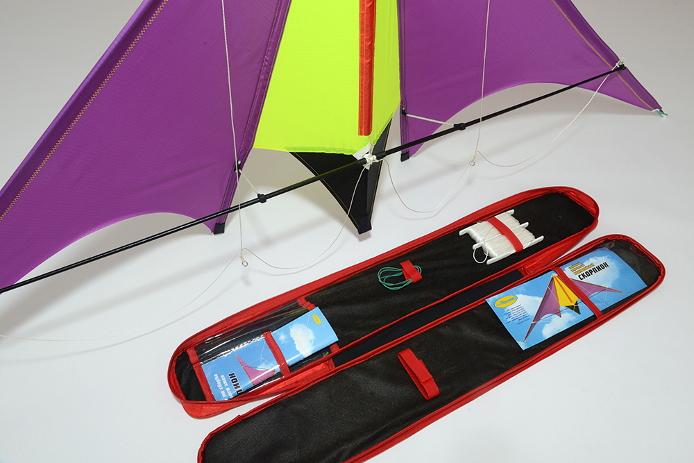 Скорпион будет рассекать голубое небо. Размер воздушного змея 180х75 см, два леера по 30 м. Упакован в тканевый чехол. Змею необходима сборка