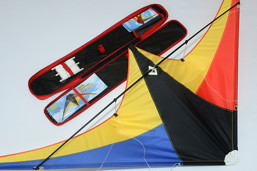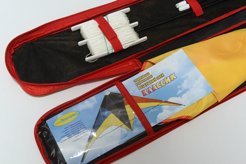 Классическая расцветка воздушного змея.. Размер воздушного змея 180х75 см, два леера по 30 м. Упакован в тканевый чехол. Змею необходима сборка